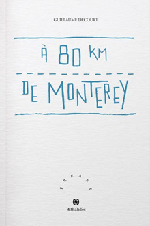 Guillaume Decourt, À 80 km de Monterey, éditions Aethalidès, disponible en librairie à partir de ce jeudi 20 mai 2021, 96 pages, 16 €, ISBN : 978-2-491517-10-6.