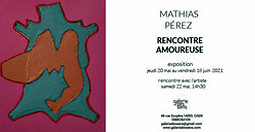 ► De ce jeudi 20 mai jusqu’au 18 juin 2021, Galerie des sens (46, rue Écuyère à Caen) : exposition Mathias Pérez, « Rencontre amoureuse ». Rencontre avec l’artiste samedi 22 mai à 14H30.