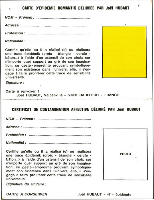L’ironie du sort a voulu que la parution en volume d’une extraordinaire série de créations transversales composées dans les années 70 – essentiellement avant 1978, date à laquelle Joël Hubaut est nommé professeur à l’École Supérieure d’Arts et Médias de Caen (ESAM) – tombe en pleine crise sanitaire, économique et socioculturelle, c’est-à-dire au moment même où l’épidémie mondialisée a infecté notre rapport au monde.