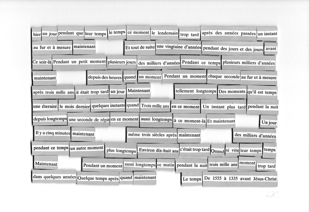 Nous présentons, à travers 3 publications et un entretien, le travail de collage CUT-UP de Cécile Richard. Pour ce troisième post, sont publiés « Le temps au temps » et « Le feu au lac ».