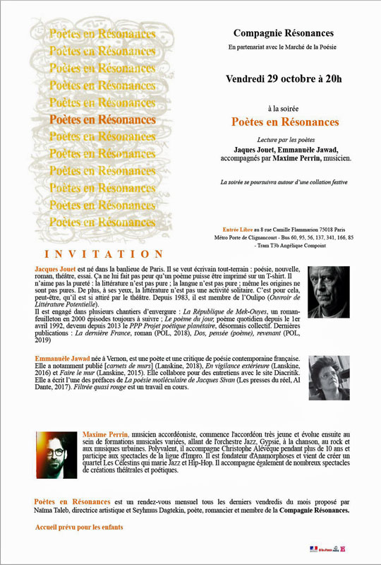 Jacques Jouet et Emmanuèle Jawad / Maxime Perrin (accordéon)