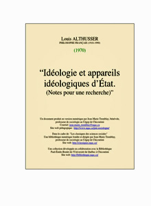 tant que sujets de classe concrets. Tout se passe, dit-il, à l’image de la scène de tous les jours la plus banale – une venue de l’autre côté de la rue : « Hé, toi là ! « Conscient que nous avons fait quelque chose de mal, nous regardons, nous nous laissons prendre, croyez l’appelant. D’une certaine manière, instinctivement, nous écoutons, acceptons que ce soit nous qui sommes appelés. C’est ainsi que la réalité opère et s’opère à travers l’idéologie, dit Althusser, même si elle semble se dérouler en dehors de l’idéologie, au-delà d’elle. C’est ainsi que nous sommes « recrutés » en tant que sujets de classe et c’est aussi pourquoi Marx dit que la vie conditionne la conscience – et non l’inverse. Ce que Lefebvre appelle la conscience mystifiée, Althusser le qualifie comme « une représentation imaginaire de nos conditions réelles d’existence ».