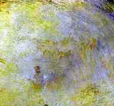 Si ces brumisations turnerisées évoquent le sommeil de la forme et en amont de la langue son éther, elles n’en restent pas moins ponctuées de possibilités, halos de grandes gerbes d’herbes, remues de vert outremer, sifflements, silences, grain, profondeurs tactiles, fluidités, hachures, circulations, courants, bulles, affects, mouvements contraires, infusions joyeuses de taches et de traces, visages fantomatiques auréolés de lumière, présences animales, yeux, empreintes du vide, impressions : Monet y rêve, Monet y chuchote.