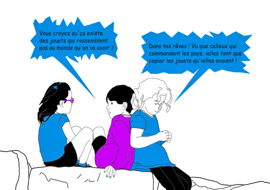 ♦ Vous attendent « les factures de trottoir, l’assurance pour les yeux, la complémentaire estomac, les moisissures noires, les sextoys sur la redoute.fr et les enfants-serviettes pour s’essuyer les fesses » (38)…