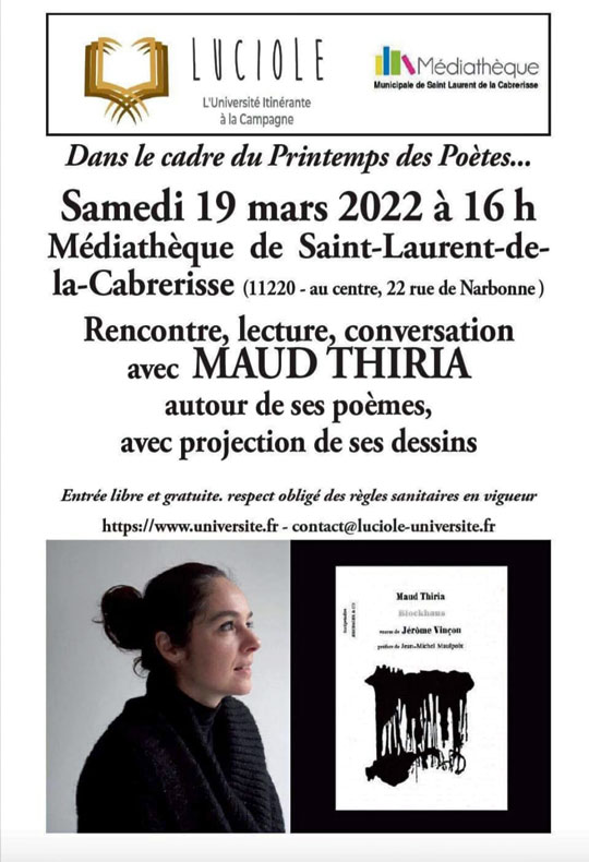 ► Inauguration du Festival POEMA le mercredi 16 mars à Nancy (Musée-Aquarium, 19H), avec Laurence Vielle et Vincent Tholomé.