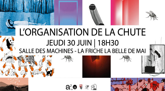 ► Jeudi 30 juin à 18H30, Friche La Belle de mai à Marseille, salle des machines : Lectures et performances sonores à l’occasion du lancement de la revue L’organisation de la chute #4, Habiter l’in(di)visible, revue composée de créations graphiques, accompagnées de textes littéraires et philosophiques.