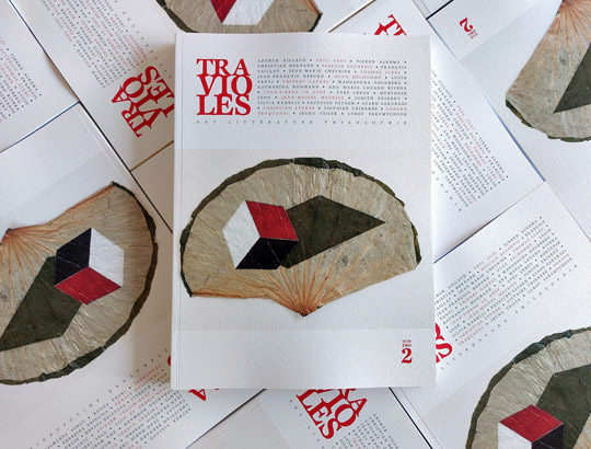 → Travioles a été fondée en 1999 par Antoine Gallien, Valérie Grall et Christian Jambet. Après 16 numéros ayant accueilli nombre de signatures illustres (Pierre Alechinsky, Camilla et Valério Adami, Charles Dantzig, Marie Darieussecq, Pierre Dumayet, Macha Makeïeff, Valérie Mrejen, Jean-Luc Nancy, parmi tant d’autres) aux côtés de premières parutions de tou·te·s jeunes artistes et écrivain·e·s et une interruption de presque 10 ans, la revue réapparait en 2021 sous l’impulsion de Valérie Grall, scénographe, accompagnée cette fois-ci de Didier Semin, conservateur, enseignant, critique et historien de l’art.