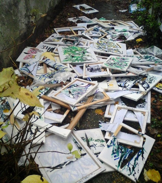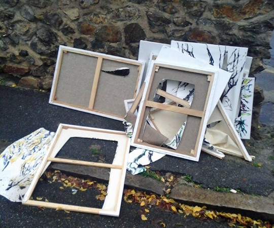 La question reste : nommer ou non ? En pratique on hésite, on recule, on a sa pudeur, on ne veut pas faire de vagues, on répugne à donner dans le déballage d’horreurs. Surtout, l’idée de garder le moindre lien avec son bourreau suscite une peur panique qui reste intacte malgré le temps. Quand j’ai écrit sur Facebook que je me retrouvais sans domicile après la destruction de mon œuvre (j’avais trop peur, je ne pouvais plus rentrer chez moi) je ne nommais personne ; pourtant tout de suite deux comparses de mon ex-concubin m’ont téléphoné pour exiger que je retire mon post, parce que certains de mes contacts auraient pu en déduire que c’était lui, l’auteur de ces violences, ce qui aurait risqué de nuire à sa réputation. Tremblante, aux abois, j’ai cédé aux pressions. Pourquoi ai-je continué à céder, à subir ?