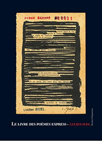Entré dans l’espace poétique au début des années 80, après sa période de découvertes et initiations en un temps d’extension du domaine littéraire grâce aux avant-gardes, Lucien Suel se situe assez rapidement au carrefour des expérimentations les plus diverses : cut-up, poésie visuelle, mail art… Sa poésie mécanique, reproductible dans ses ateliers poétiques, le fait sortir du Beau-Style inventé par un écrivain-de-génie, ce qui lui vaut d’être reconnu dans le champ de la poésie expérimentale au tournant du XXe et du XXIe siècle. En particulier pour ses poèmes express, création qu’il définit ainsi dans sa présentation du projet : « Le poème express, dérivé des expérimentations de William Burroughs, est aussi dans mon esprit, cousin des productions dadaïstes – les mots dans un chapeau de Tristan Tzara et les poèmes simultanés d’Hugo Ball – et du ready-made de Marcel Duchamp. Il doit aussi une part de son existence au mouvement Fluxus et à ma lecture des Cahiers de l’Internationale Situationniste » (p. 12-13).