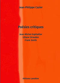 Jean-Philippe CAZIER, Poésies critiques : Jean-Michel Espitallier, Liliane Giraudon, Frank Smith, Lanskine éditions, coll. poche, printemps 2024, 196 pages, 12 €.