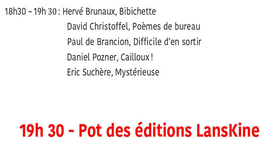 ► Les éditions Lanskine au Marché de la poésie (stand 610) :