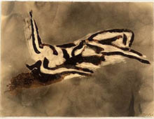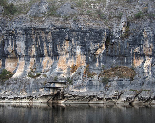 Le lendemain, vers dix-huit heures, j’étais descendu à pied, en face de la falaise de Pinsac, sur la plage de galets de Meyraguet, où depuis l’enfance j’ai l’habitude de me baigner en été dans le courant de la Dordogne. Parcourue par une grande faille couverte de fourrés vert sombre, on discerne des empâtements blancs traversés par des coulures de gris, d’ocre jaune et de bleu, elles-mêmes parfilées de minuscules failles, tracées à l’encre noire par une main tremblante, comme une écriture au-dessus d’une porte, à l’entrée d’une grotte marine où l’eau verte se glisse par en dessous. Le surlendemain, le 7 août 1987, nouvelle rencontre impromptue avec Miklos Bokor. Je le retrouvai juste en face de l’éboulis de Magès, sur une colline du Causse, assis à une petite table dans la brèche d’un muret, en train de peindre sur un papier de soie presque translucide, non pas la forme, mais les lignes de l’éboulis, avec la lune pleine juste au-dessus. L’éboulis s’achève en falaise, abruptement, sur la vallée de l’Alzou. Abandonnant Miklos Bokor à sa concentration (en une soirée, il pouvait peindre plusieurs aquarelles sur le même motif), je m’éloignai durant plus de trois heures jusqu’à vingt-deux heures, le temps de parcourir la boucle des trois gouffres : Cabouy, Saint-Sauveur et Poumayssen. De retour, alors que le soleil s’était définitivement retiré et qu’il ne restait plus que la lumière spectrale de la pleine lune, l’éboulis resplendissait au contraire avec une transparence éclatante où se mélangeaient les couleurs du désert. L’air se fonçait devenant bleu de cendre, tandis que sous la lune de plus en plus orangée, le paysage s’éclaircissait : il me sembla que Miklos attendait uniquement ce moment, dans l’écoute pure, où il n’y a plus de peinture. Très tard, il devait être presque minuit, nous sommes rentrés pour souper à L’Hospitalet, où ma mère avait veillé pour nous attendre. De nouveau, il voulut me faire voir la falaise de Gluges sous la pleine lune. Et nous voilà repartis en voiture, j’avais du mal à le suivre tellement Miklos conduisait vite. Il y avait un arbre au bas de la falaise qui se reflétait dans l’eau : « L’arbre me regarde », dit-il. La route en contrebas se reflétait dans l’eau luisante et noire formant une excavation blanche, où des buissons s’ouvraient et se refermaient lentement comme un pliage à l’encre de Chine. À la clarté lunaire, la falaise blanche et ses coulures noires se reflétaient dans l’eau en s’inversant, la falaise devenant noire et les coulures blanches. La falaise montait de la profondeur comme les branches d’un chandelier éteint dans la nuit. Sur notre gauche, je percevais une faille immense entre les deux parties de la falaise, une ligne fuyante et brisée, au-dessus de laquelle la roche ne semblait tenir que par miracle, suspendue dans le vide. Alors Miklos me parla aussi de la Fontaine Saint-Georges, une résurgence du gouffre de Padirac qui passe à proximité de Gluges et que je ne connaissais pas, mais dont il avait fait des aquarelles. La lune se trouvait maintenant en face de la falaise et éclairait le tableau ; le contraste entre la falaise noire et les coulures blanches dans l’eau était saisissant, comme si le reflet devenait plus réel que la falaise elle-même. Miklos une fois parti, je restai seul, et je repensais longuement au Déluge de Poussin. Devant mes yeux, une branche de pin en arc-de-cercle s’agitait dans l’air, n’ai-je rien oublié ? Le temps a cessé d’être et la lumière du soleil elle-même a cessé d’être, remplacée par la clarté lunaire, une transparence secrète où l’inconnu arrive jusqu’ici, dans un face à face où il n’y a plus rien entre l’inconnu et nous.