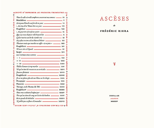 Ascèses de Frédéric Riera, précédé d’une composition collective Le Trou à lait, Arapesh, 2024, 37 & 12 pages, 2 €.