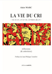 ► Alain Marc, La Vie du cri – vie et cri, cri et vie, écriture du cri –, réflexions (& entretiens), préface de Jean-Philippe Testefort, éditions Unicités, Saint-Chéron (91), automne 2024, 274 pages, 20 €.