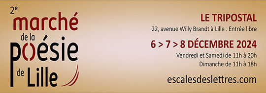 ► Ne manquez pas le 2e Marché de la poésie de Lille, avec notamment : L. Castellani, F. Chiarello, J. Darras, S. Deshayes, Johan Grzelczyk, S. Loizeau, D. Quélen, C. Richard, E. de Rijcke, F. Smith… Tous renseignements utiles : ici.
