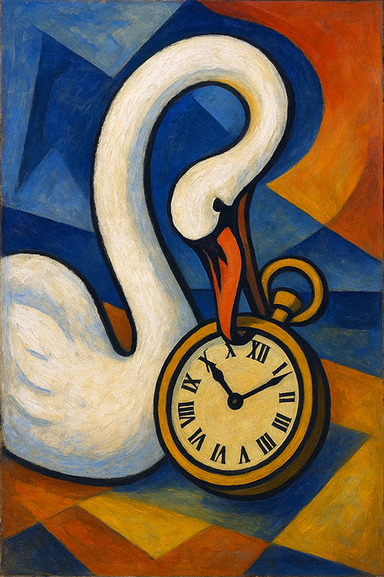 L’image du cygne avaleur de montre à gousset est une création générée par IA.
