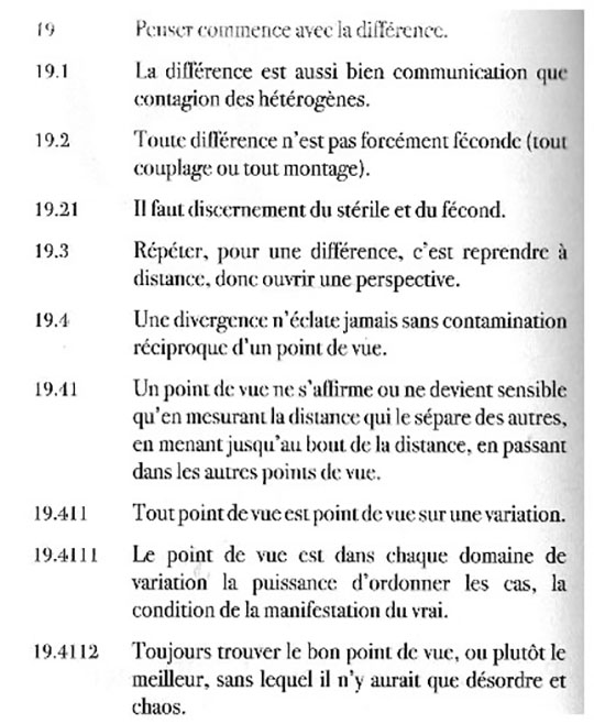 Il s’agit bel et bien ici d’un objet poétique, en ce sens que, prenant pour objet la pensée même de Deleuze, il opère une mise en tension – voire, en crise – de la pensée comme du langage dans une série d’agencements rigoureusement impétueux ou impétueusement rigoureux qui offre un jeu d’échos formels et conceptuels.