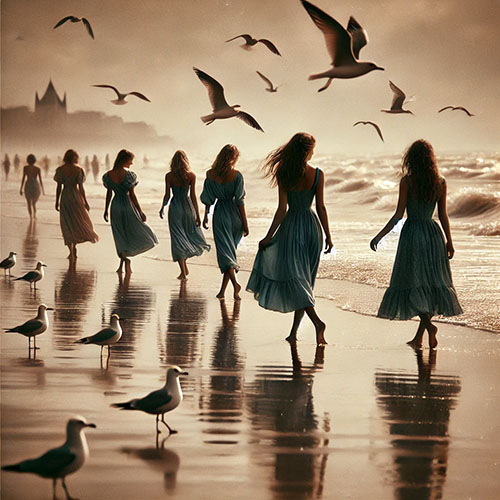 [4] La vibration (« On a continuellement une sensation de hors-temps, mais un hors-temps ancré dans le passé »… « Le titre Filles bleues se justifie parce que celles qui extendent le poème de Sylvia sur la plage/page sont tes hétéronymes féminins »… « et parce qu’elles ont pris en passant les couleurs du ciel et de la mer »… « Ces poèmes disparates rassemblés en un nouvel opus, dans un nouveau contexte, ne sont-ils pas de nouveaux poèmes ? »