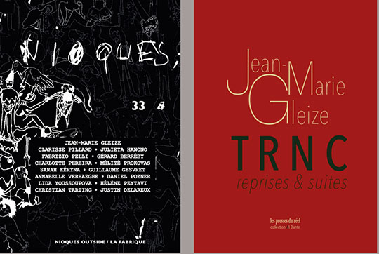 À l’occasion de la sortie de Nioques 33 et de la parution de TRNC – Reprise & suites, dernier livre de Jean-Marie Gleize, fondateur de la revue, une soirée de lectures nioquiennes à Zoème (8, rue Vian 13006 Marseille), avec Sarah Kéryna, Clarisse Pillard et Jean-Marie Gleize.